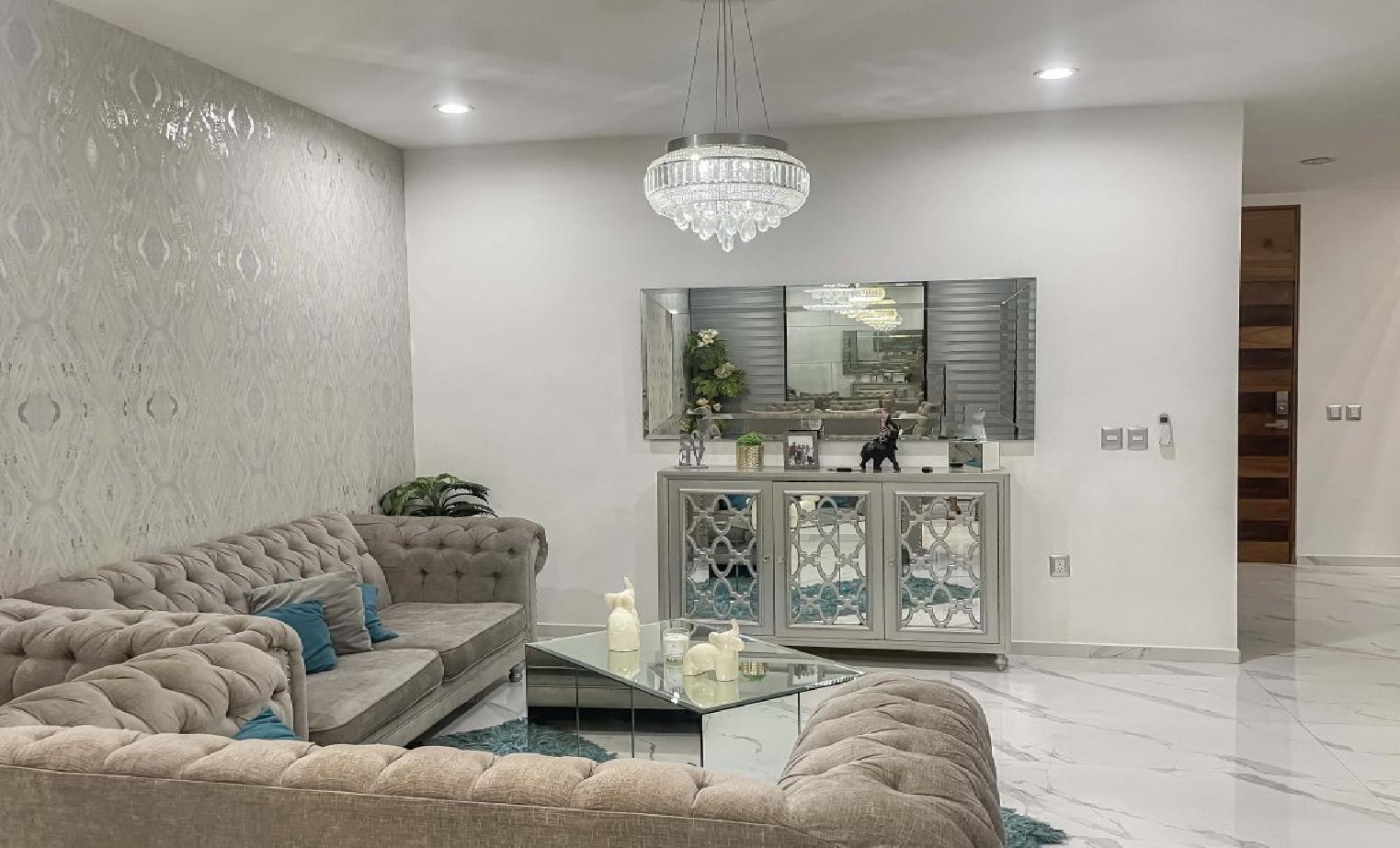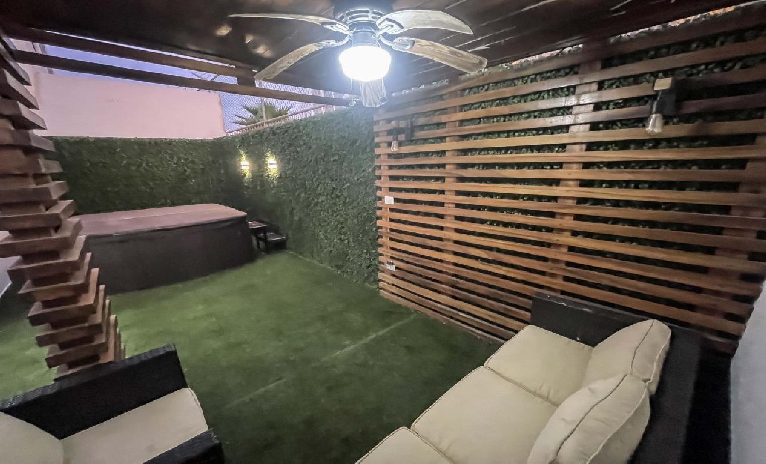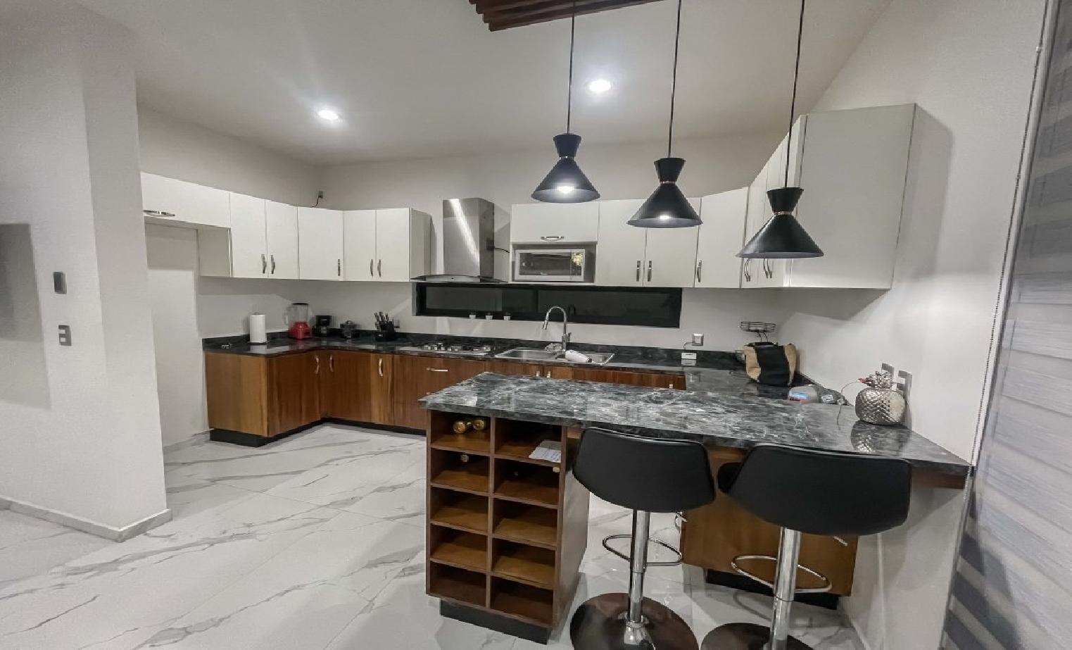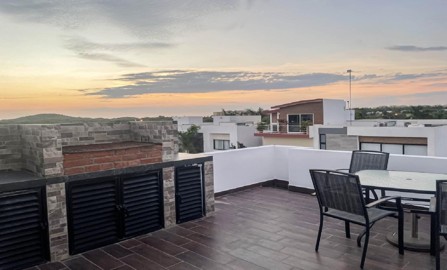 hermosa casa de 3 niveles con 5 recamaras y 4 baños sala comedor y cocina y terraza con pergola de madera y roof top con asador