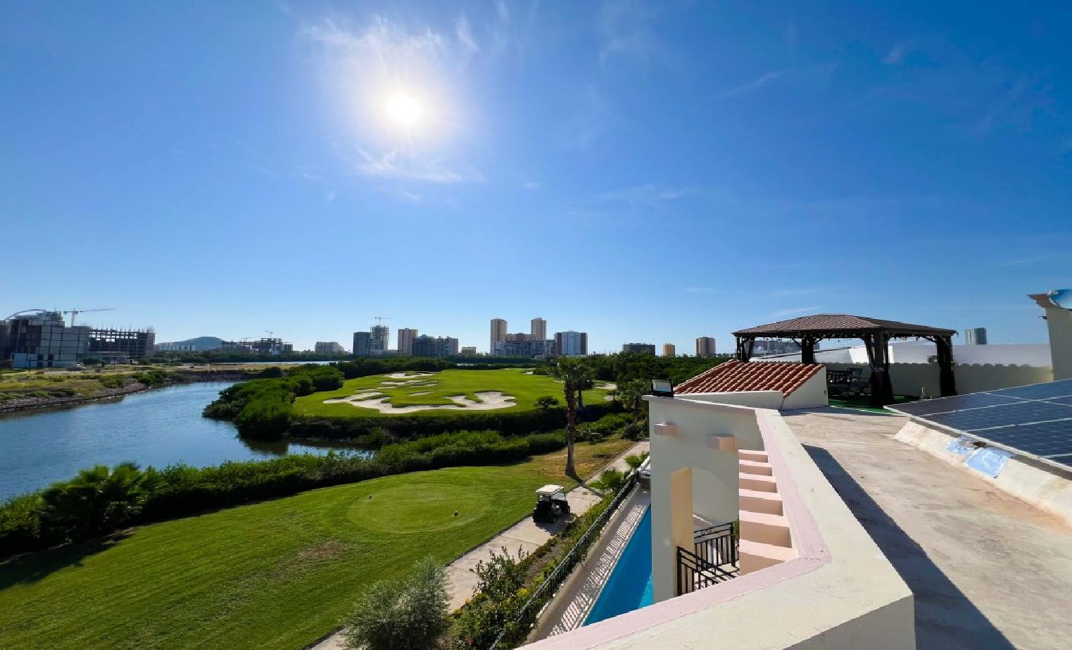 Marina, Marina Campo De Golf Código RCV9030E-28 | Lote 713 m2 | Constr.749 m2 | 3 Pisos | 5 Baños | 1 Medio baños | 3 Recámaras | Vista: Campo de Golf $35,000,000.00 Pesos (MXN)Su Hogar frente al Campo de Golf y los andadores rodeados de hermosa naturaleza tropical donde podrá descubrir un nuevo atardecer cada día desde sus terrazas privadas y areas de convivencia al aire libre. Vistas espectaculares desde cada espacio de la Villa. Amplias areas habitables en esta Villa estilo Toscana para toda la Familia, incluso un area muy particular para el Señor de la casa que lo va a sorprender. Elementos especiales por toda la casa que sin duda harán su vida más cómoda, como su elevador privado que lo llevará desde tu estacionamiento subterraneo hasta el área social, segundo nivel de recámaras o hasta el Roof top donde se sorprenderá con su vista al mar. Cuenta con Paneles Solares para el servicio de toda la propiedad. Llame Hoy mismo para programar su visita y conocer su nuevo Hogar en Mazatlán.